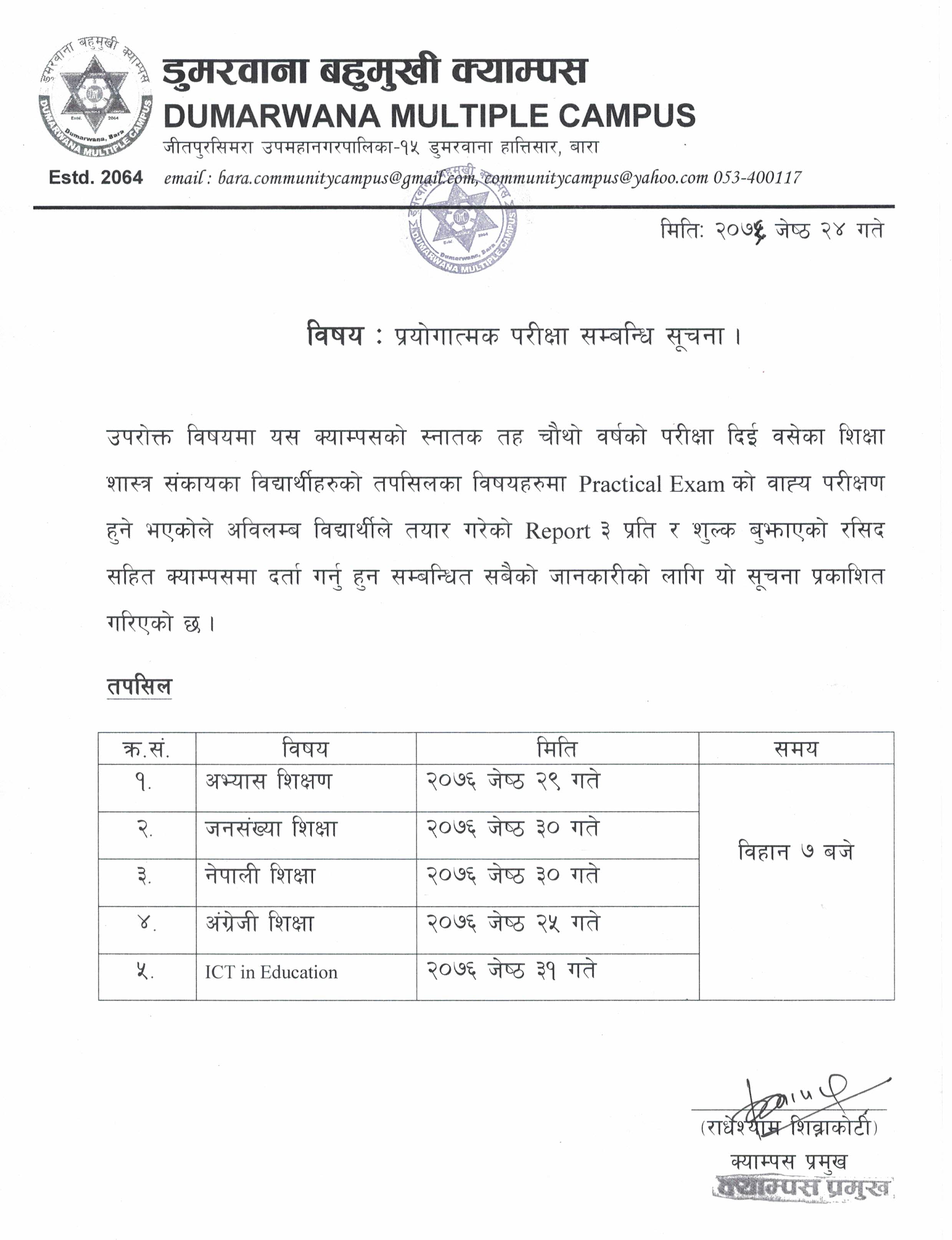 Read Moreस्नातक तह शिक्षा शास्त्र संकाय अन्र्तगत विभिन्न विषयहरुको प्रयोगात्मक परीक्षाको वाह्य परीक्षण ताल...